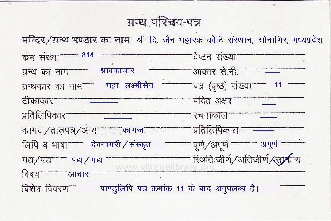 | Source | : | Shree Digambar Jain Bhattarak Koti Sansthan, Sonagir (MP) |