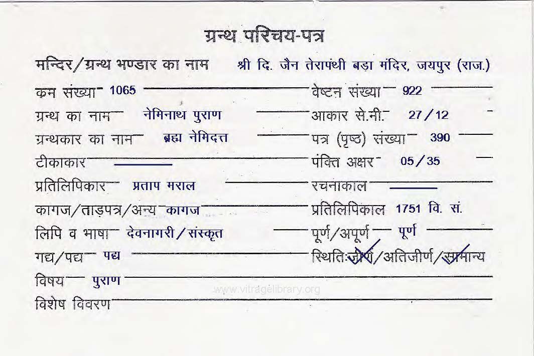 | Source | : | Shree Digambar Jain Panchayati Mandir, Teergaran, Meeruth (U.P.) |