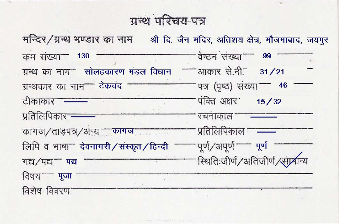 | Granth | : | Solahkaran Dashlakshan Pooja Jaymal |