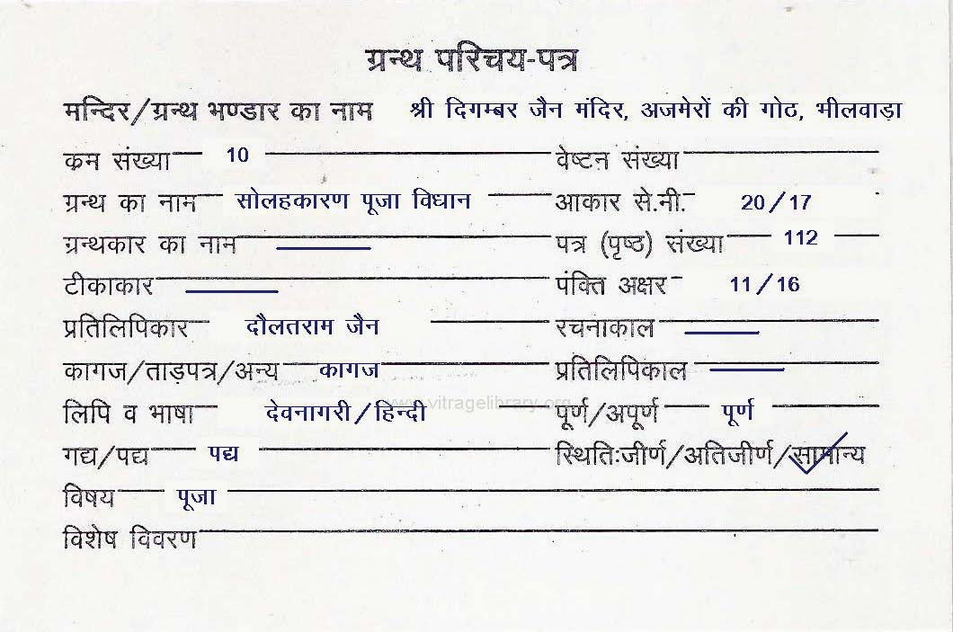 | Granth | : | Solahkaran Puja Vidhan |