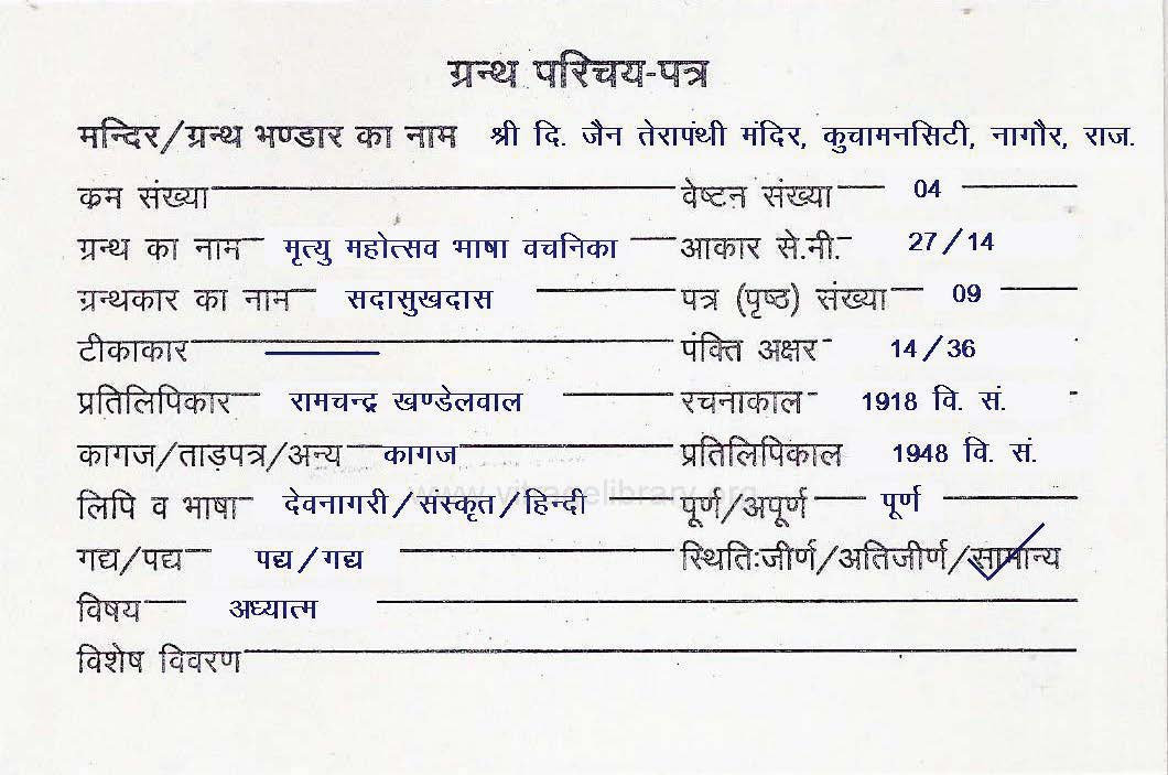 | Manuscripted By | : | Shree Daulatram Ji Jain |