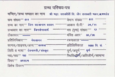 | Source | : | Shree Digambar Jain Bada Mandir, Khindukan, Jaipur (Raj.) |