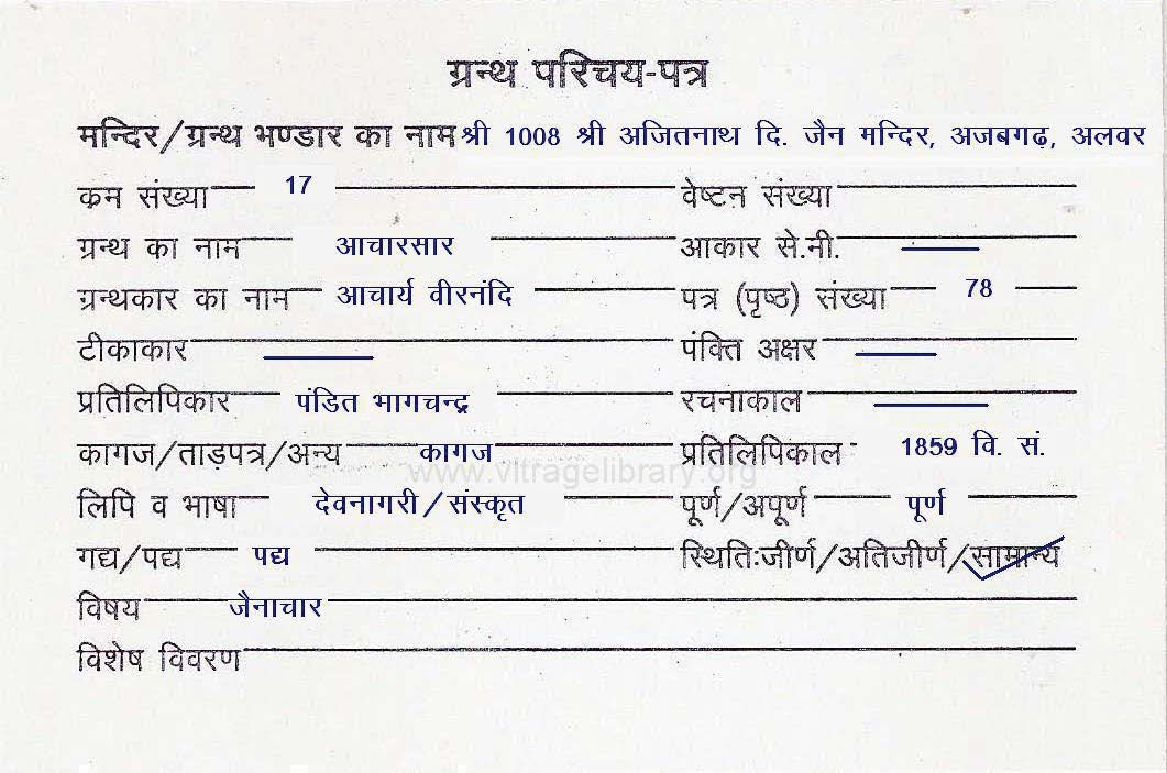 | Source | : | Shree Digambar Jain Mandir, Ajmero ki Goth, Bhilwara |