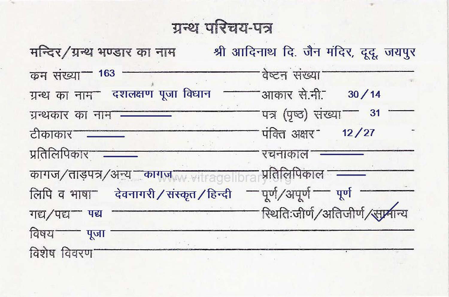 | Source | : | Shree Digambar Jain Mandir, Deewan Bhadichand Ji, Jaipur (Raj.) |