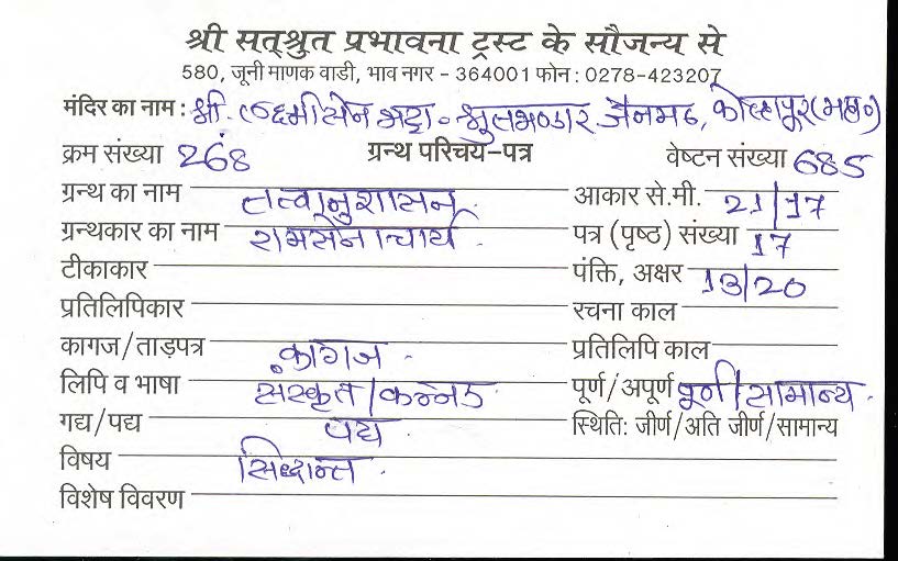 | Granth | : | Tatvaanushasan |