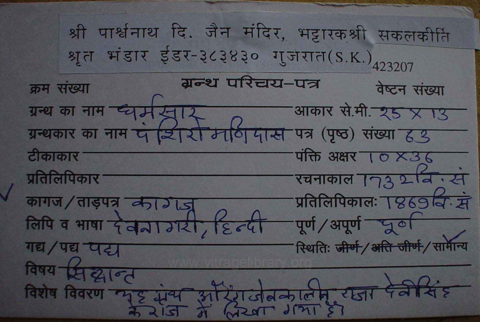 | Manuscripted By | : | Pandit Gopilal Ji |