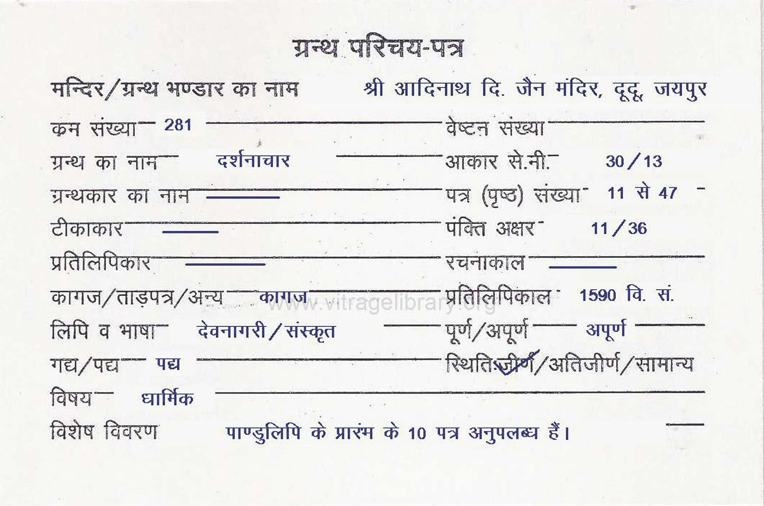 | Manuscripted By | : | Pandit Nathuram Jain |