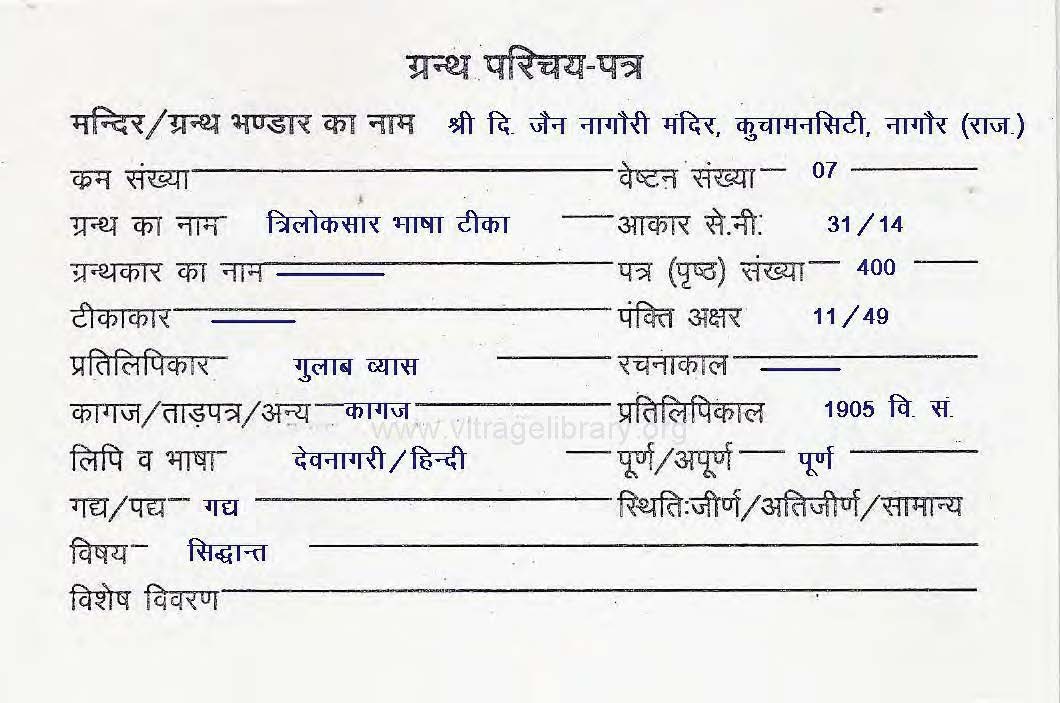 | Granth | : | Triloksar Bhasha Teeka |
