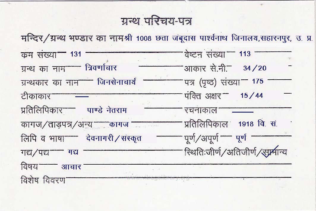 | Granth | : | Trivarnachar 2 |