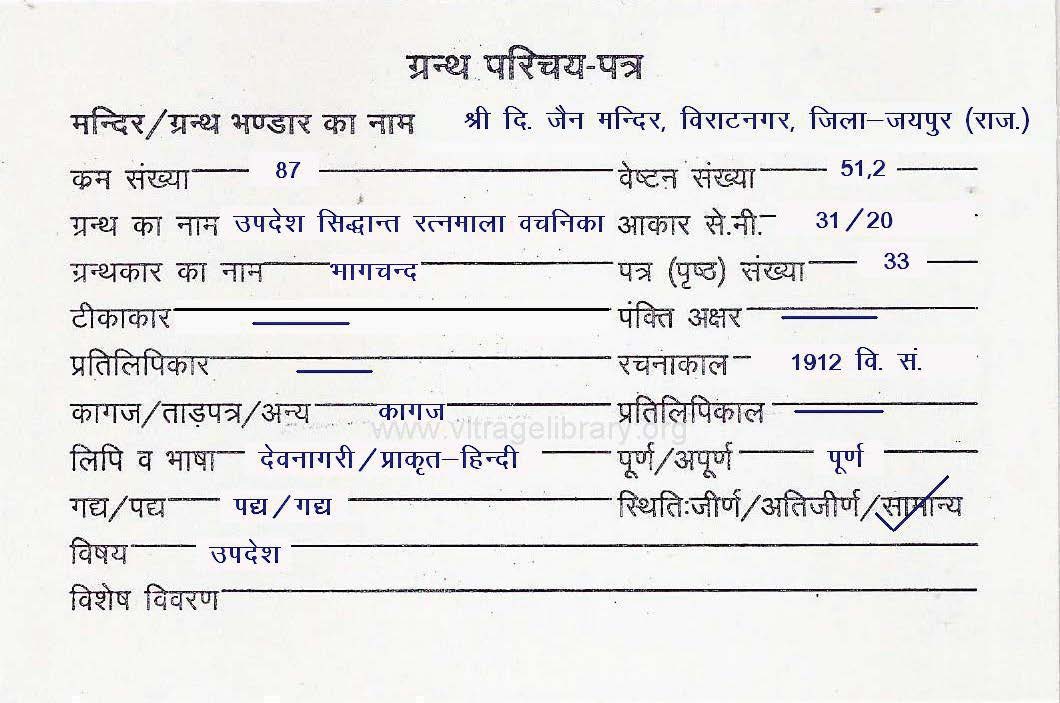 | Granth | : | Updesh Siddhant Ratnamala Vachanika |