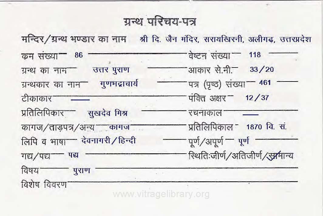 | Granth | : | Uttar Puran |