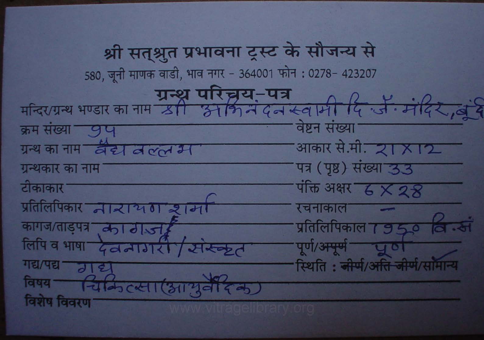 | Granth | : | Vaidya Vallabha |