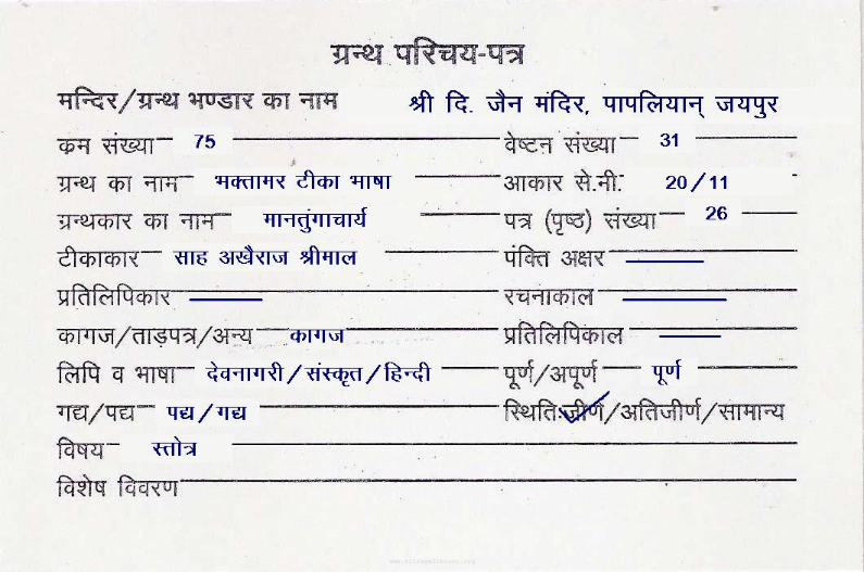 | Language | : | Prakrit & Hindi |