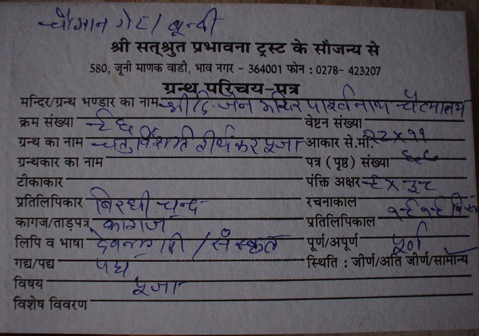 | Manuscript Year | : | 1962 Vikram Samvat |
