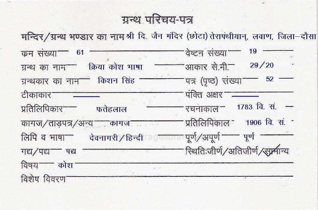 | Manuscript Year | : | 1695 Vi.Sa. |