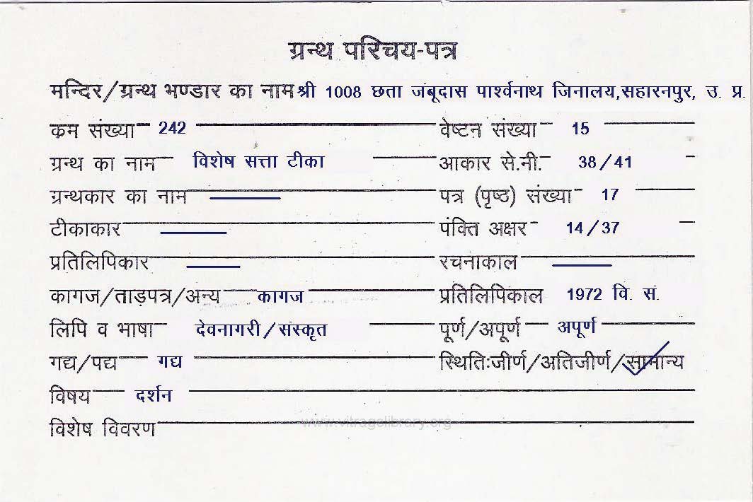 | Granth | : | Vishesh Satta Teeka |