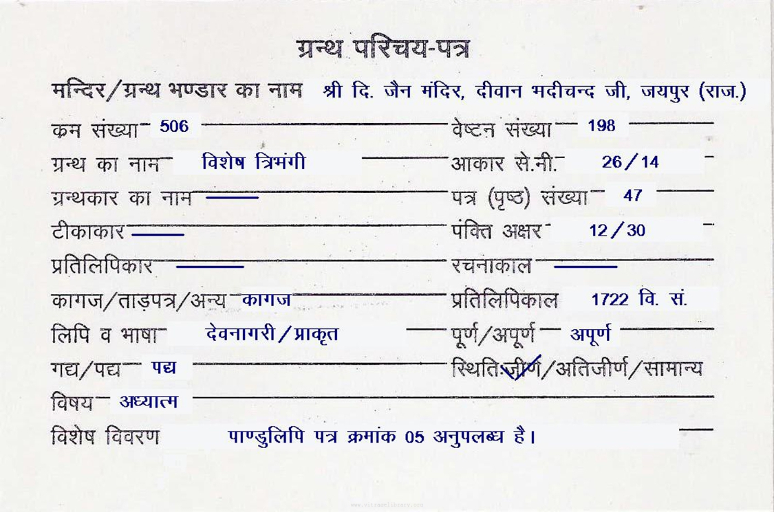 | Granth | : | Vishesh Tribhangi |