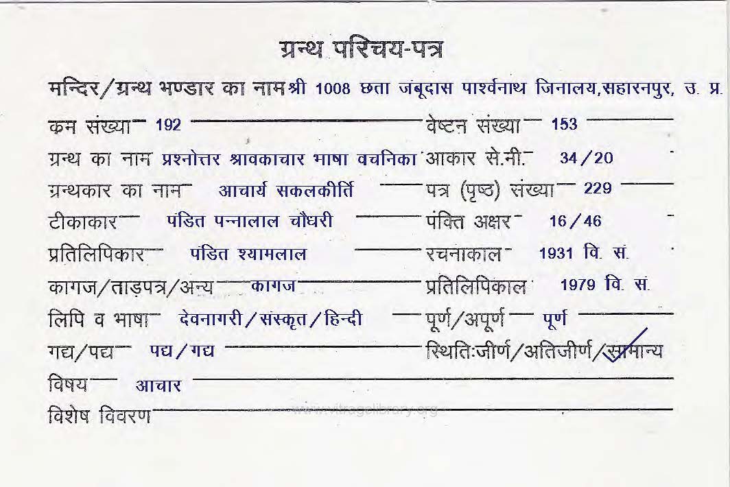 | Comments | : | This contains Śīla Kathā, Niśi Bhojana Kathā, and Sammeda Śikhara Nirvāṇa Kuṇḍa. |