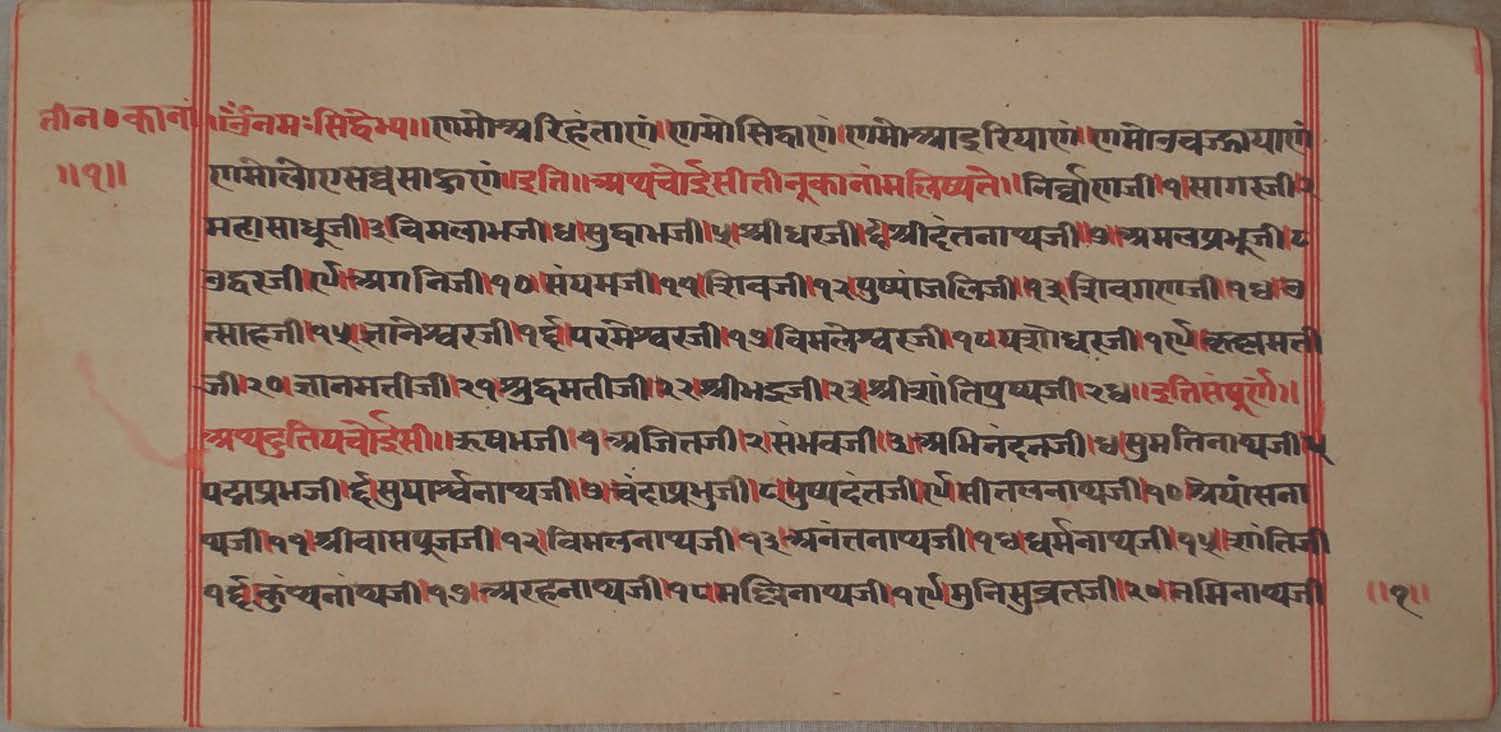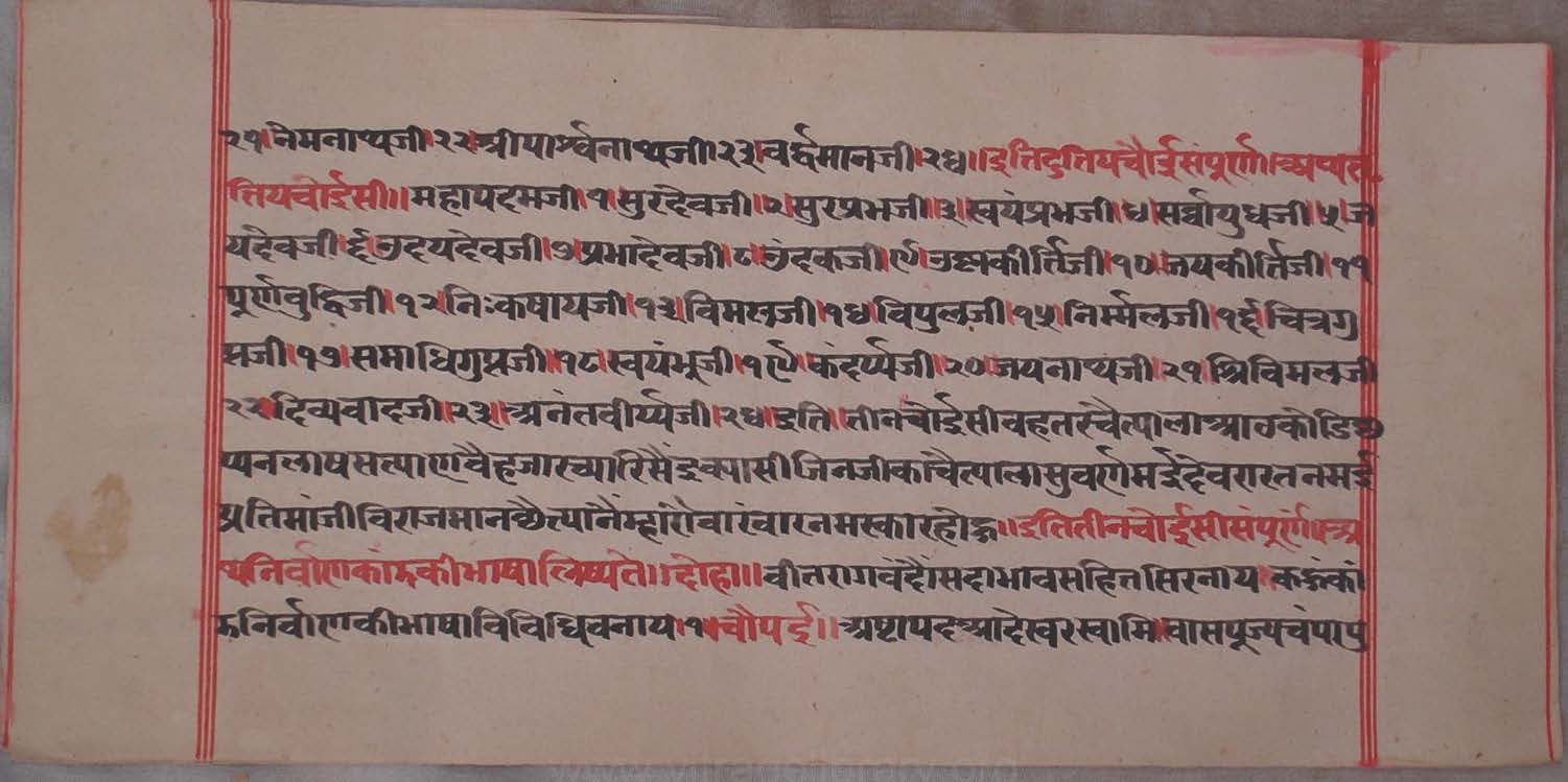 | Comments | : | This contains Three Choubīsī Nāma, Nirvāṇa Kāṇḍa in vernacular language, and Bhaktāmara Stotra. |