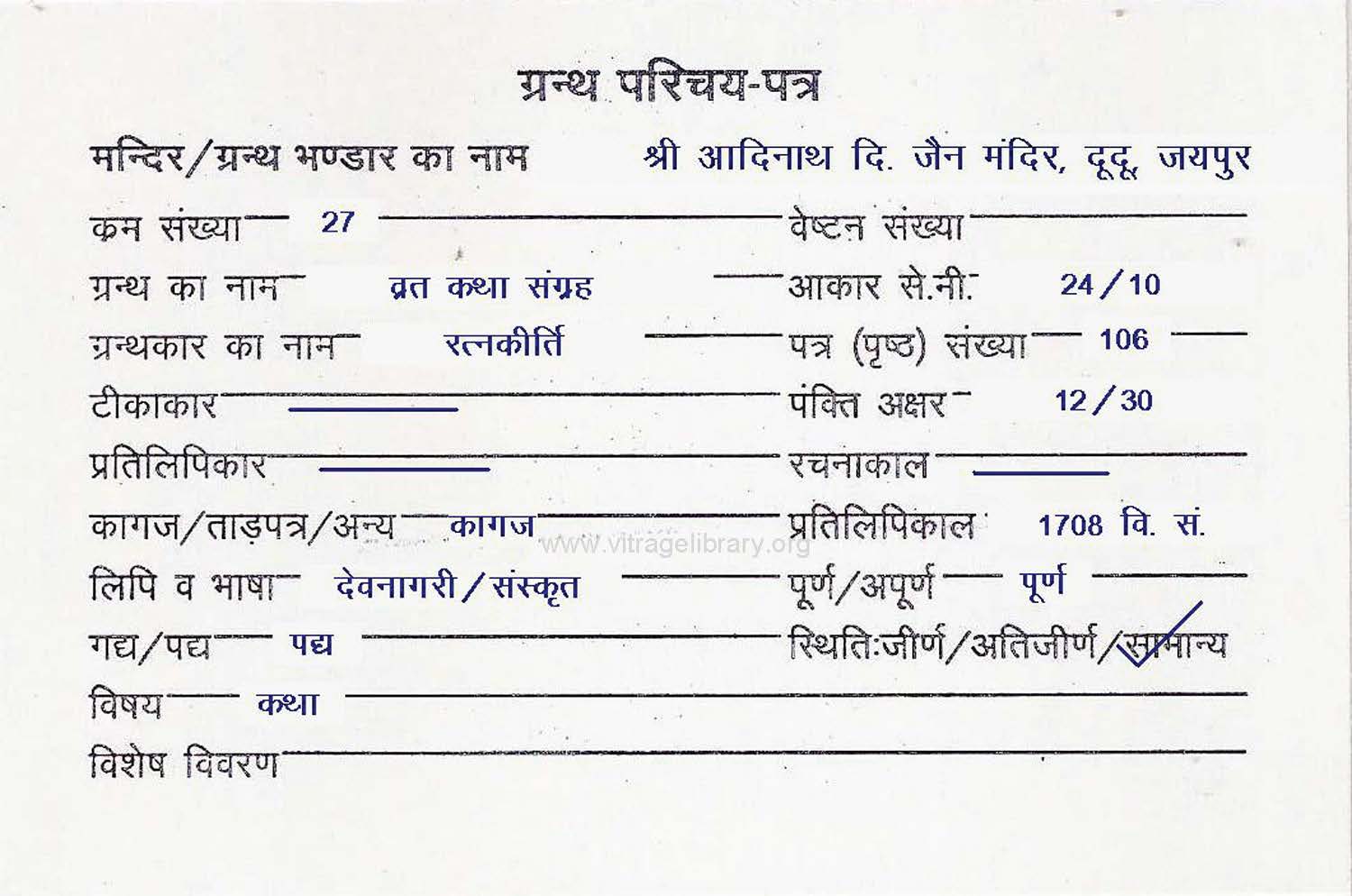 | Granth | : | Vrat Katha Sangrah |