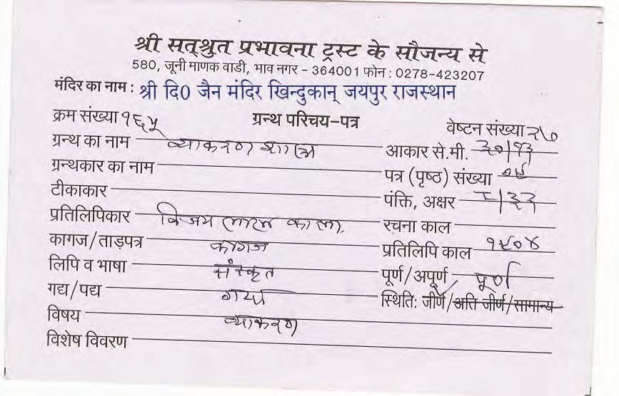 | Manuscripted By | : | Sh. Vijaylal Kala |