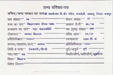 | Source | : | Shree Bhattarak Yashkirti Digambar Jain Saraswati Bhavan, Rishbhadev |