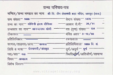 | Granth | : | Yogini Hriday Deepika |